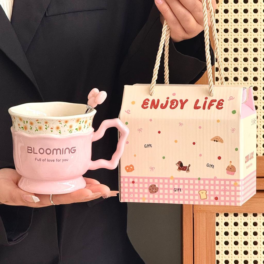 Tazza in Ceramica Piccola Floreale Retrò dall'Aspetto Elegante per Ufficio Colazione Caffè Regalo di Festa per Madre e Sorella
