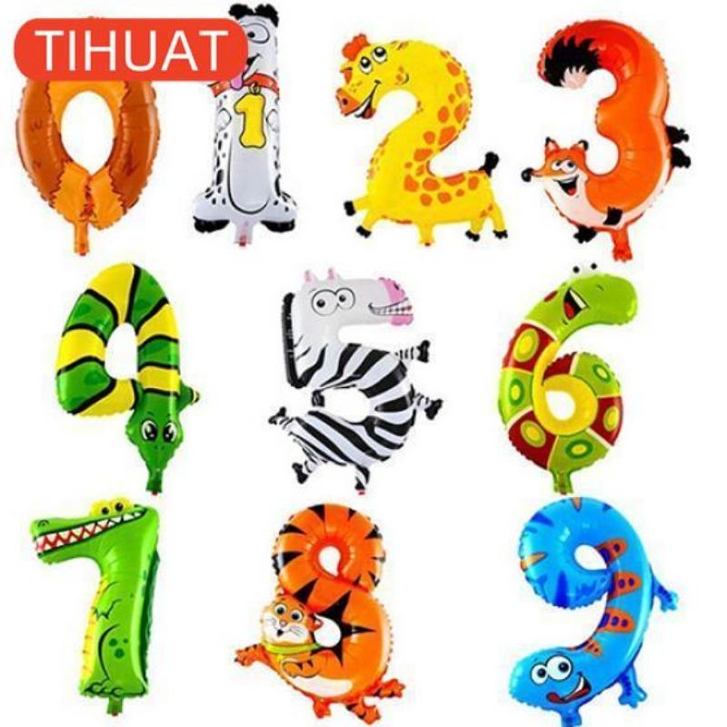Cartoon Animal Number Foil Balloons for Kids Party Decoration Birthday Wedding Decor