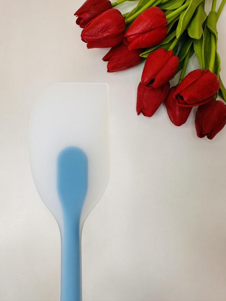 Questa spatola è uno strumento essenziale e indispensabile per qualsiasi appassionato o professionista della pasticceria e della cucina in generale. Il modello che abbiamo visto (con manico blu e pala bianca o simile, fatto di silicone) è particolarmente popolare per il suo design e la sua funzionalità.. ⭐ Punti Salienti Versatilità: È perfetta per una grande varietà di compiti: Mescolare impasti, creme, glasse o salse morbide. Raschiare completamente le ciotole e i recipienti, grazie alla loro flessibilità, senza lasciare residui. Estendere glasse, come il cioccolato che si vede sulla torta, con facilità e precisione. Materiale di Qualità (Silicone): Resistente al Calore: Il silicone di buona qualità supporta alte temperature (molti fino a 250^\circ\text{C} o più), rendendolo sicuro per lavorare con miscele calde o vicino a fonti di calore. Morbida e Sicura: Non graffia né danneggia le superfici antiaderenti di pentole e padelle.