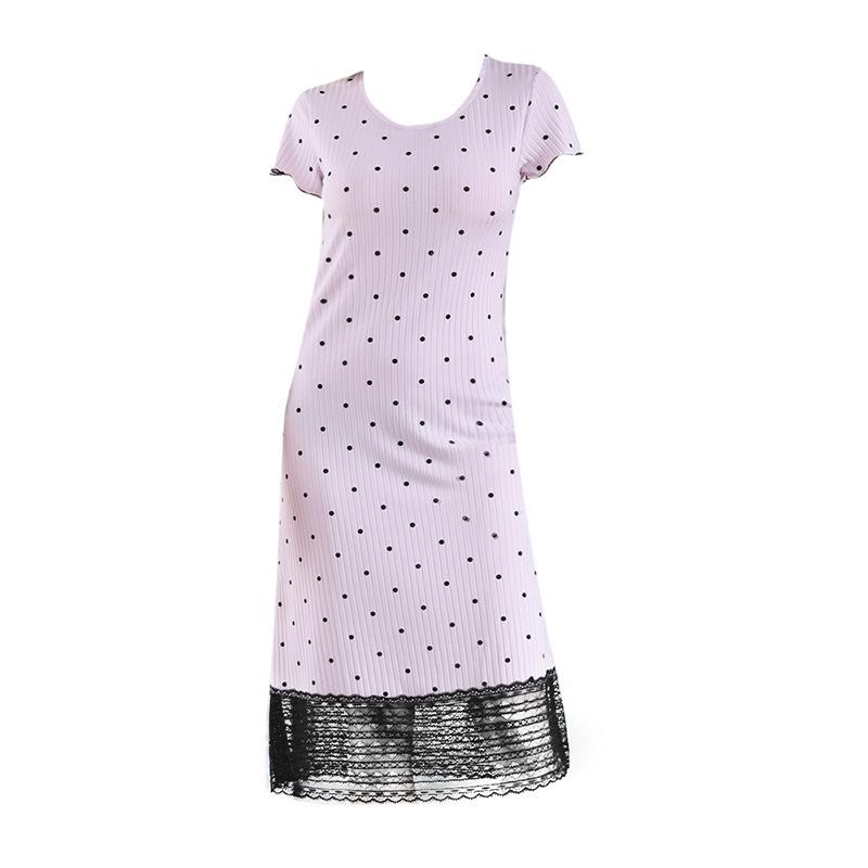 Mid-length Nightgown for Women In Summer Short-sleeved Slimming Polka Dot Printed Large-sized Pajama Striped and Elastic Outerwear for Home Wear