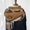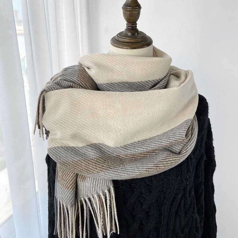 Sciarpa da donna elastica morbida a quadri a righe invernale calda con finiture a nappa, accessorio di moda versatile per uscite casual e clima freddo