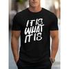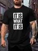 Men's Casual Fashion Cotton T-Shirt, "It Is It Is" Graphic Printed Short Sleeve T-Shirt Oversized Top Men's Clothing Plus Size