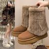 Snow boots in the winter of 2025 new thick-soled heightening medium boots popular velvet thickened large cotton shoes