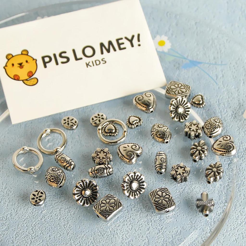 10pz Perline Distanziatrici Argento Vintage a Forma di Cuore e Fiore per Gioielli Fai da Te