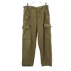 These are US military cotton satin baker pants from the late 60s to early 70s. The size categories are approximate. Please refer to the actual measurements. The back pocket button is missing. There is peel and fray in some places, fluffing, rubbed and stained all over. Please understand that these are used clothes before purchasing.