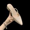 Pearl lazy cool slippers thick heel versatile commuter pointed shoes summer wear bag head shoes fashion square heel half slippers