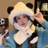 Korean New Autumn and Winter Hat for Women Cute Plush Panda All-in-one Hat for Winter Warm Scarf Hat Two Piece Set Thick