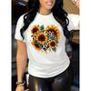 T-shirt di Cotone Manica Corta Girocollo Donna Top con Stampa 2D