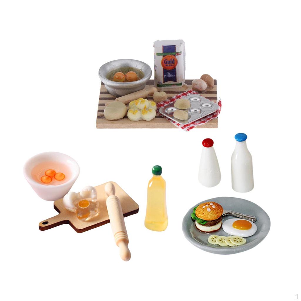 1:12 Scale Dollhouse Kitchen Miniature Baking Set Egg, Flour, Rolling Pin, Chopping Board,