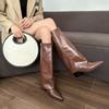 Fashion Leather Pointed Toe Women's Long Boots Autumn Winter High Heels Ladies Knee High Shaft Shoes New Rock Trend 2025 Fashion Boot