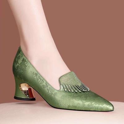 Fashion Fashionable New Chinese Style Shallow Mouth Comfortable Button Decorated Wine Glass Heel Cover Toe Pointed Toe Medium Heel