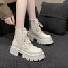 Fashion 2025 New Women's Platform Ankle Boots White Pu Leather Thick Sole Combat Booties Woman Spring Autumn Non Slip Motorcycle Boots