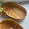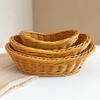 Oval Shape Rattan Storage Basket Wicker Material Handmade Fruit Display Basket Curved Design Breathable Woven Bread Basket