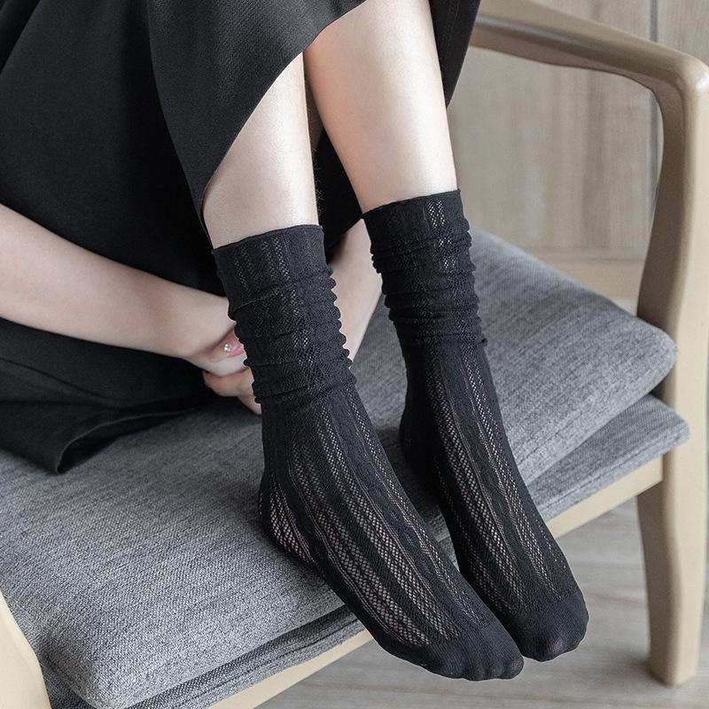 Sexy Women Socks Retro Lace Floral Mesh Lolita Cute Sock Thin Middle Tube Transparent Socks Girl Sweet Breathable Designer Socks