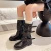 Wasteland wind belt buckle stacking boots new old retro western cowboy boots pleated medium boots