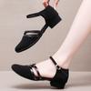 Pelle di pecora piedi non stanchi scarpe singole punta quadrata strass fibbia a una parola tacco medio spesso scarpe Mary Jane scarpe da ballo con tacco alto da donna