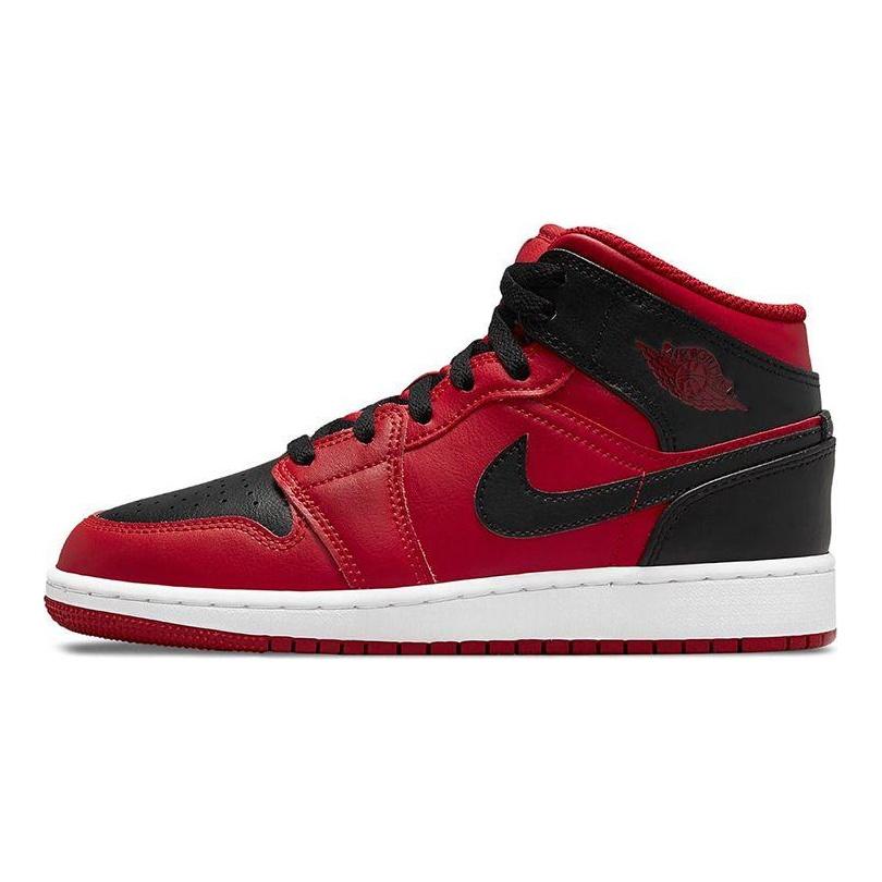Air Jordan 1 Mid Reverse Bred Scarpe da Ginnastica da Uomo Rosso Palestra Nero Bianco 554724-660