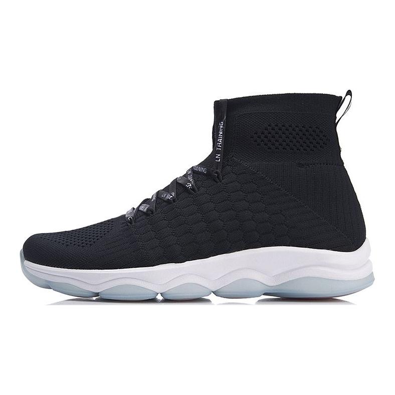 Li-Ning Unbounded Fabric Shock Absorbing Non-Slip High-Top Casual Shoes Women Shoes Black White AFJN008-1