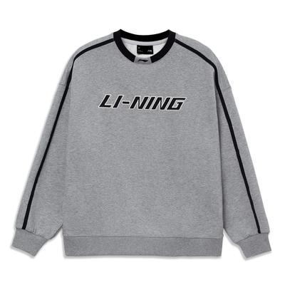 Li-Ning Nuova Felpa Girocollo Oversize con Stampa Ricamata Unisex Grigio YWDT541-3