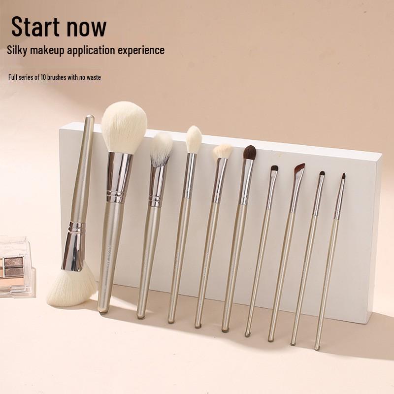 Champagne Gold Soft Bristle Makeup Brush Set - Stippling, Blush, Contour, Loose Powder Brushes with Animal Wool.