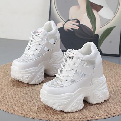 Moda 13CM Rete Aria Microfibra Sintetica Pelle Bling Vulcanizzate Vuote Estive Sneakers Chunky con Zeppa e Plateau Scarpe da Donna
