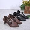 Fashion Hot Selling 2025 Elegant Pointed Toe Ladies Office Work Shoes Spring Summer T-straps Women's Mid Heels Hollow Out Dress Pumps