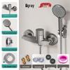 Brass Shower Set Complete Kit - Hot/Cold Mixer Valve, Wall Bracket, Hose & High-Pressure Shower Heda