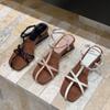 Fashion Elegant Square Toe Narrow Band Designer Brand Sandal Women Fashion Shallow Wedges Sandal Women Concise Comfortable Slide Sandal