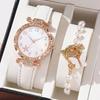 6PCs/Set Women's Retro Watch Set Fashion Simple College Style Student Quartz Leather Watch With Bracelet Set (Box Not Included)