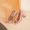 Nude high heels women are not tired of feet 2025 new inner height increase short heel thick heel round head bow light mouth single shoes women