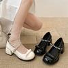 Mrs. Luxury Fragrance~ Coarse Heel Mary Jane High Heels Women's Shoes 2025 Spring New French Round Head Silver Single Shoes