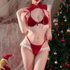 Biancheria intima sexy set bikini a tre punti giorno di Natale sexy pon pon allacciato autunno e inverno pigiama