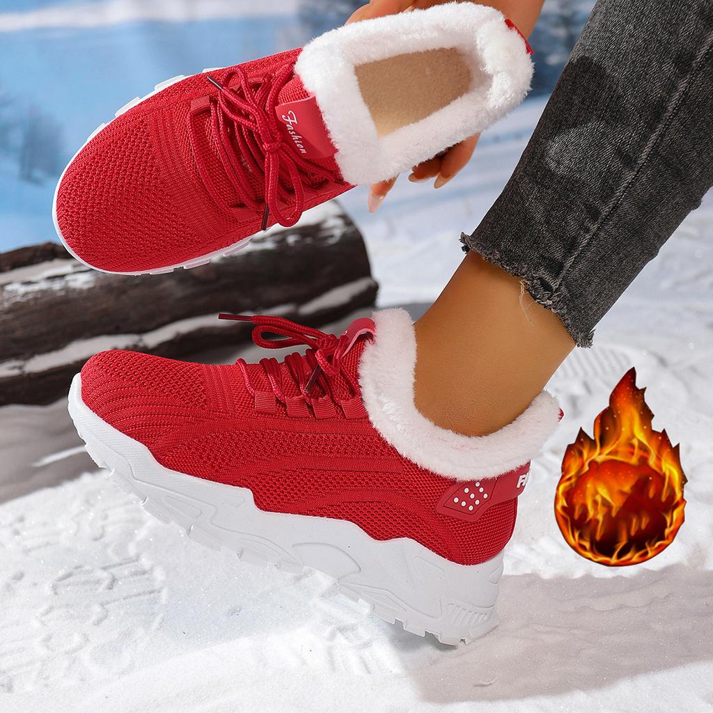 Sneakers/Stivali da Corsa Invernali Caldi da Donna Antiscivolo con Fodera in Peluche - Scarpe Slip-On Basse con Suola Ammortizzata in PVC - Tomaia in Tessuto Lavabile a Mano