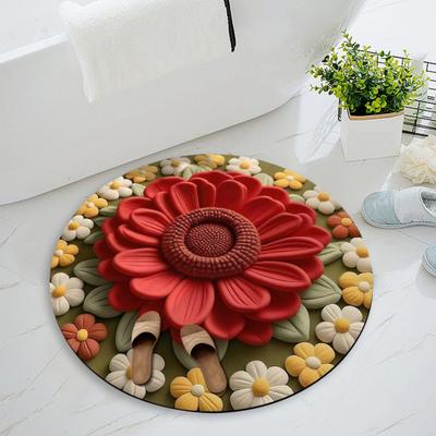 Floral Plush Diatomaceous Earth Floor Mat 3D Visual Flower Pattern Diatom Mud Floor Rugs Non-Slip Absorbent Bath Mat for Bedroom Kitchen Entrance