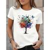 Women's Butterfly Tree Print Harajuku T-Shirt Round Neck Top Short Sleeve Casual Summer Tee Shirt Summer & Spring Clothing