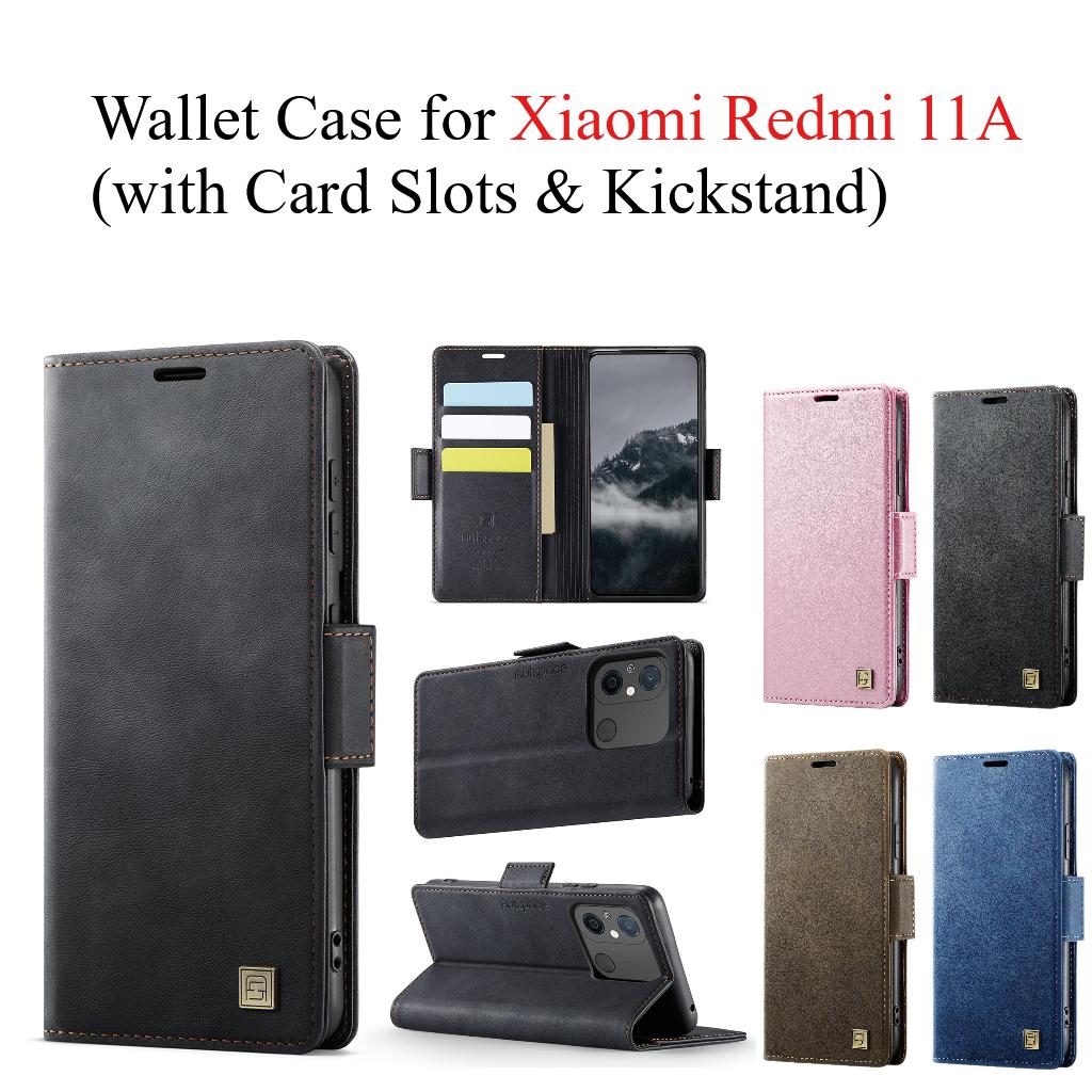 For Xiaomi Redmi 11A Wallet Case with Card Slots & Kickstand, 360° Protection Leather Case