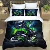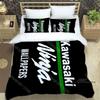 Set Biancheria da Letto Stampa Retro 3D Logo Moto K-Kawasaki Set Biancheria da Letto Elegante Copripiumino Coperta Trapuntata Letto Regalo di Compleanno di Lusso