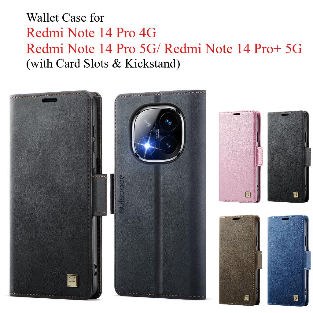 Per Xiaomi Redmi Note 14 Pro 4G/ Redmi Note 14 Pro 5G/ Note 14 Pro+ 5G Custodia a Portafoglio con Fessure per Carte e Cavalletto, Custodia in Pelle con Protezione a 360°