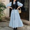 ZANZEA Women Casual Round Neck Summer Short Sleeve Plaid Print Dress