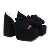 FOREADA Sandali da Donna in Ecopelle PU Piattaforma Tacchi a Zoccolo Super Alti Punta Aperta Fiocco Sexy da Festa Estivi Nero Verde Leopardo 35-43
