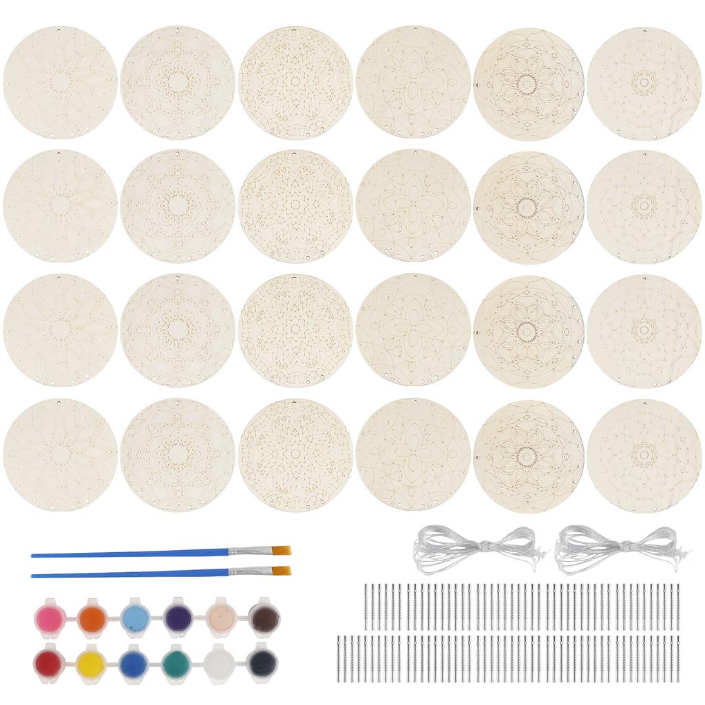 24Pcs Mandala Wind Chimes Craft DIY Unfinished Wood Windchime Creative Coloring Craft Hanging Ornament for Kids Home Birthday