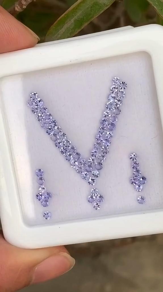 Single A Color Necklace Set Layout, Natural Tanzanite Gemstone Lot, A Quality Round Cut Stone Layout.