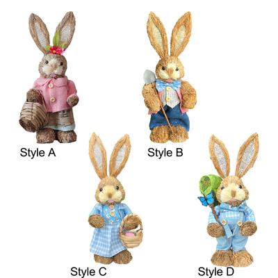 Statua Coniglietto Pasquale Statuetta Creativa in Paglia per Scaffale Camera da Letto Balcone