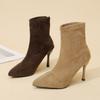 Autunno e inverno 2025 versione coreana moda temperamento punta appuntita tacco alto elastico stivali sottili scamosciati da pendolare tacco sottile elegante stivaletti wo