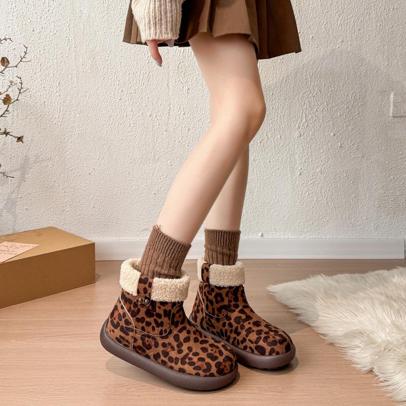Retro wind velvet short boots warm snow boots women's autumn and winter fashion suede versatile Mori series medium tube flat-bottomed snow boots