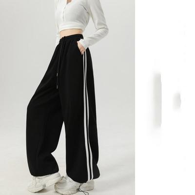 Pantaloni sportivi larghi e dritti con vita alta e orlo a righe, pantaloni casual larghi