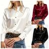 Women's Autumn Solid Color Metal Buckle Long-Sleeve Stand-Up Collar Shirt