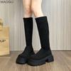 Fashion Thick Bottom Women's Knee-High Long Boots Autumn Winter Pleated Fringe Black Boots 2025 New Fashion Botas Mujer Size 35 40