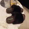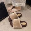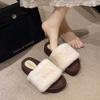 Internet celebrity leopard print fluffy slippers women wear 2025 autumn and winter new popular fashion plush thick bottom one-word cotton slippers