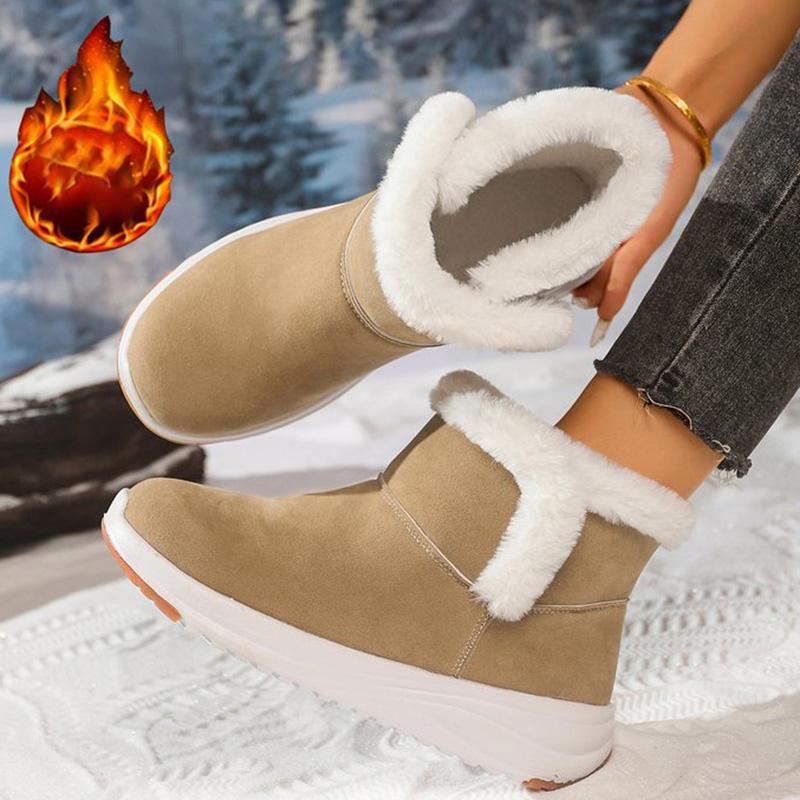 Stivali da Neve Corti Caldi in Peluche Moda Invernale Donna Taglie Forti Stivali da Neve con Plateau Donna Moda Camoscio Sintetico Antiscivolo Scarpe in Cotone Mujer